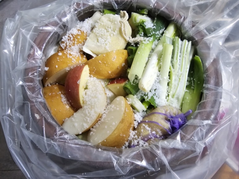 역류성 식도염인지 매운것을 목먹어 동치미를 담가먹으니 너무 시원해 많이 담갔더니 기진맥진~~