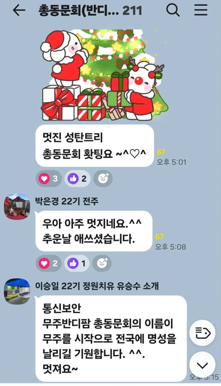 11월에 진행된 4기 윤종만 교육생님의 제안으로 온라인 송년회가 열려 반디팜만의 임업 문화가 만들어져 해마다 계속되고 있습니다. 총동문회 카페에 저장되어 있으니 계속 발전 시키면 좋겠습니다.