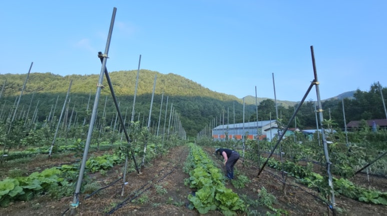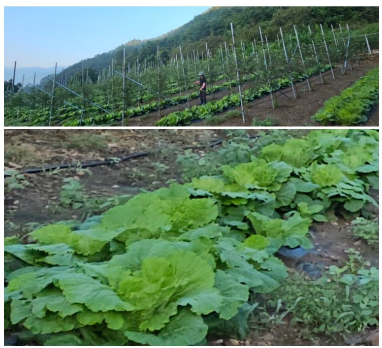 올해 사과를 새로 심어 골에 배추를 심으라는 농사 멘토 말씀에 따라 추석배추를 심더니 세상에 배추가 이렇게 많이 컸네요