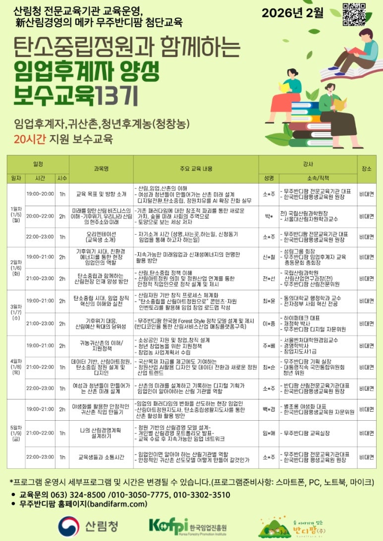 - 이전글#산림이#답이다#탄소중립정원#임업후계자양성#무주반디팜#디지털#임업후계자 26.01.08