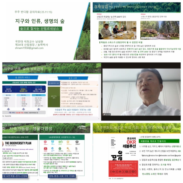 생명의 숲~ 이중에서 제일 중요한게 인류라고. 하시면서 앞으로의 산림경영은 사람중심으로~ 경제와 환경,공익과 사익간의 충돌은 어떻게 할것인가?