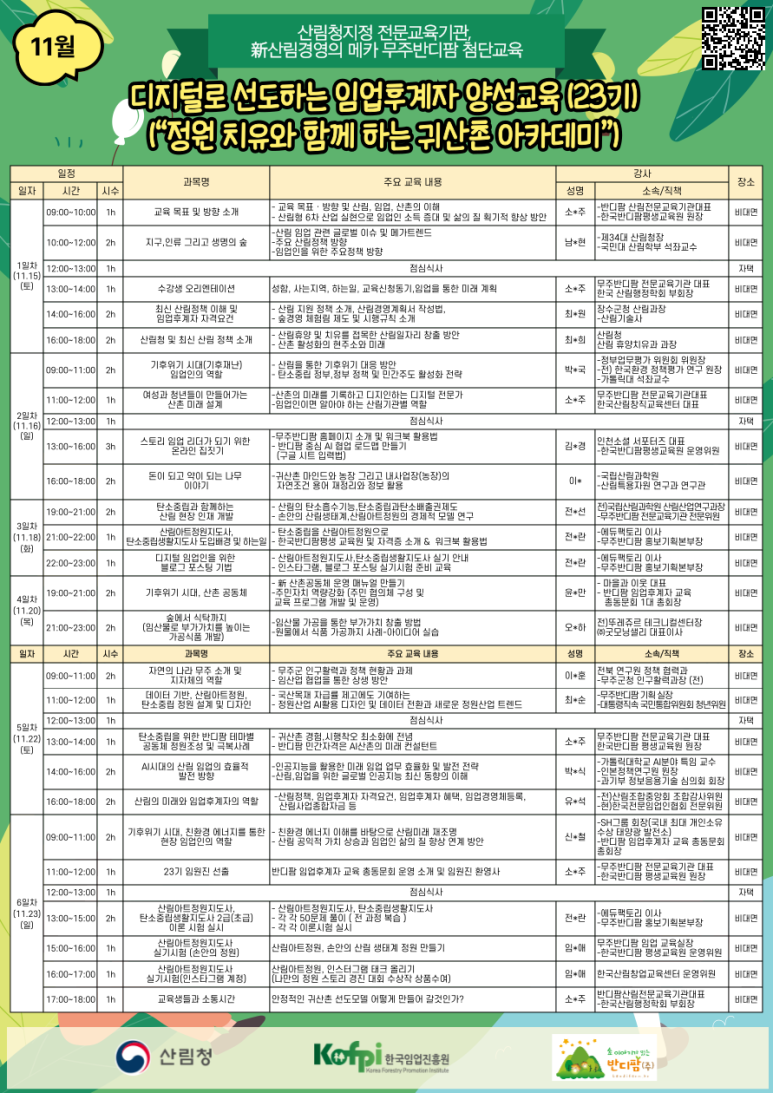 산림청지정,임업후계자 40시간(23기) 안내~ 교육기간 : 11월 15~ 23일