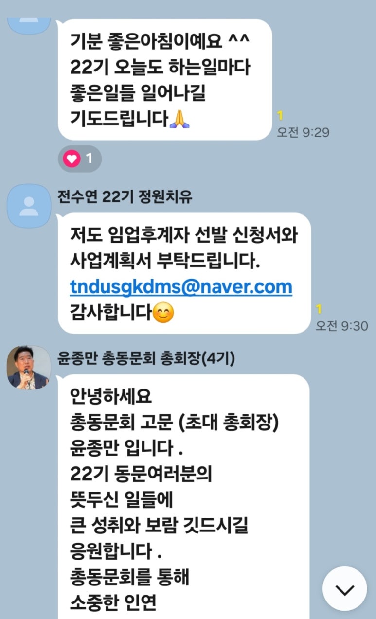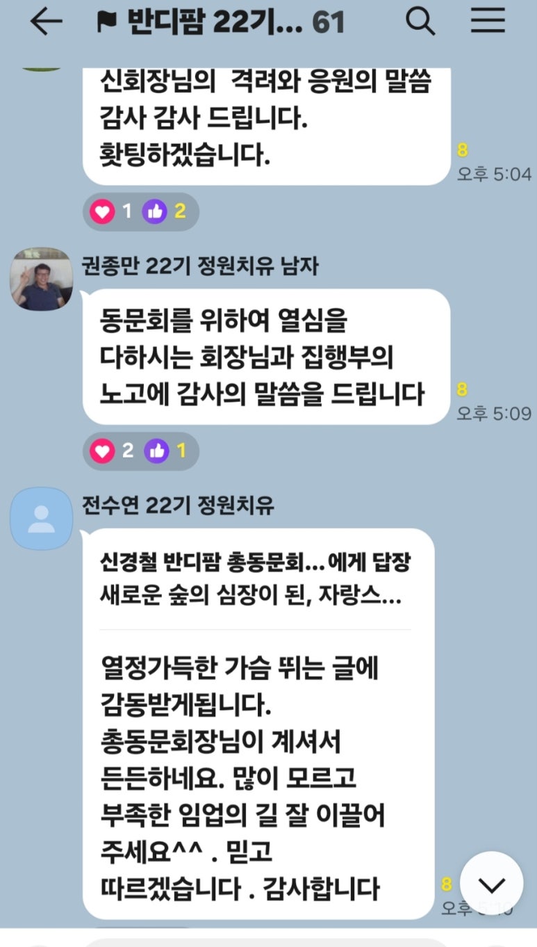 잘 마쳤더니 교육생의 80%가 총동문회에 가입했다. 역대 최고 기록이다.