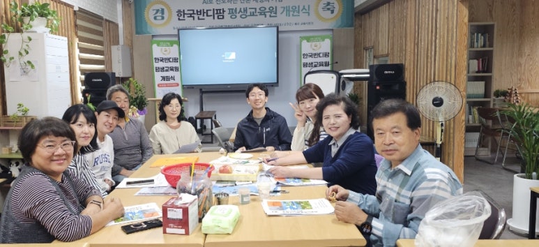 그동안 기획한것을 연휴안에 마무리하는것으로 회의 마치고 , 한국 반디팜 평생교육원 강의는 영상강의로 많이 이루어질것이므로 영상찍는법, 전자칠판,책상으로 쉽게 강의하는 기법도 익히고 화기애애한 시간이였습니다.