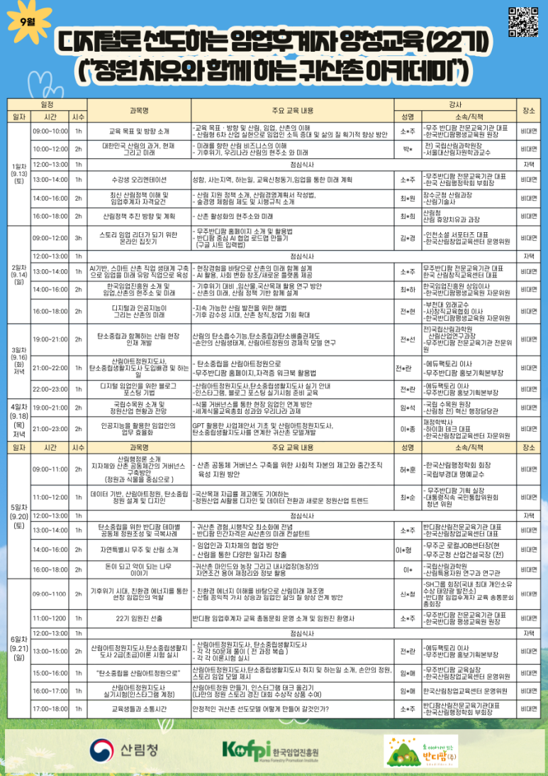 교육명 : 디지털로 선도하는 임업후계자 양성 (22기)