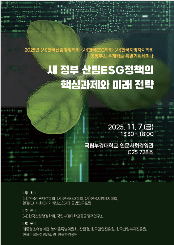 25년 (한국산림행정학회, (사)한국 ESG학회 ,(사) 한국지방자치학회 공동주최 추계학술 특별 기획 세미나~